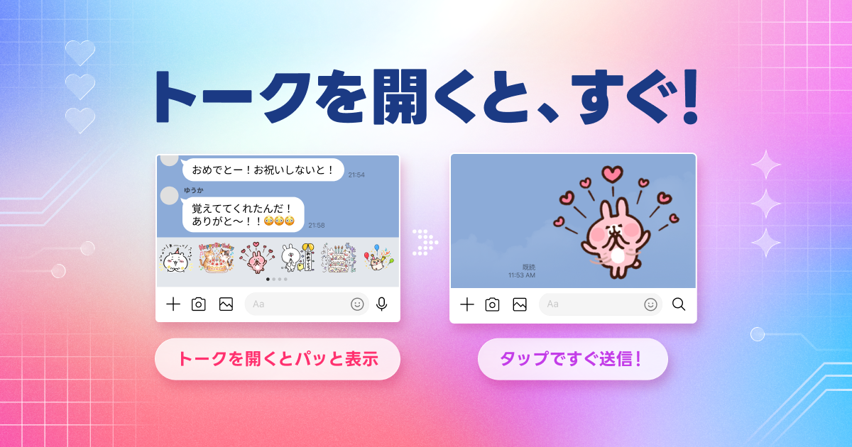 サービス How To記事 2026年02月18日 トークの返信時に便利な「返信スタンプ」機能をご紹介! LINEのトーク画面を開いた時に、メッセージのやりとりの流れに合ったおすすめのスタンプが表示される機能を試したことはありますか?「よりスピーディーに、より気軽にスタンプを送りたい!」というニーズにお応えして、「返信スタンプ」機能の提供を開始しました ◾️「返信