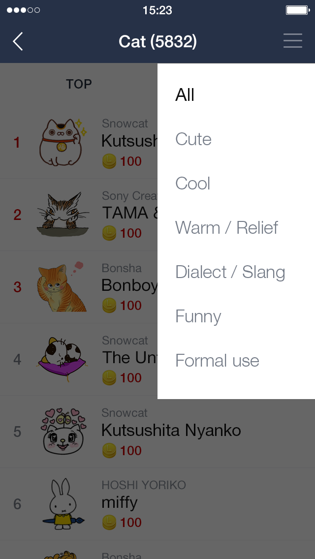クリエイターズスタンプが日々増加しているため、現状のスタンプショップでは探しづらい・買いづらいという声を多数いただいています。そこで、見やすく・探しやすくなるよう、スタンプショップ内にカテゴリ機能を追加します。