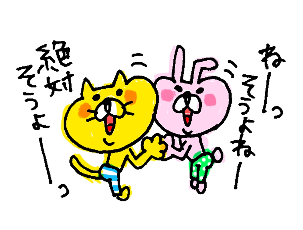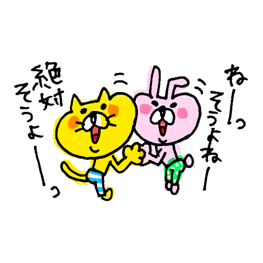 うさたとねこたの仲睦まじい感じが、描いていて微笑ましかったです(笑)。誰でも、自分の意見に心から共感してもらえると嬉しいですよね。誰かに共感してもらえた時、誰かに共感した時、このスタンプで分かり合える喜びを思いっきり表現してほしいです。
