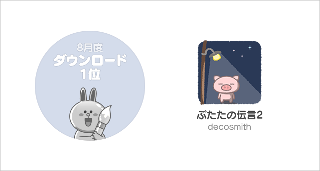 2014年度の「LINE Creators Stamp AWARD」で準グランプリを獲得したカナヘイさんが、久々に人気キャラクター「ピスケ&うさぎ」の新作をリリース。関西弁のゆるいセリフが人気を呼び、2位以下を寄せ付けない、圧倒的なダウンロード数を記録しました。