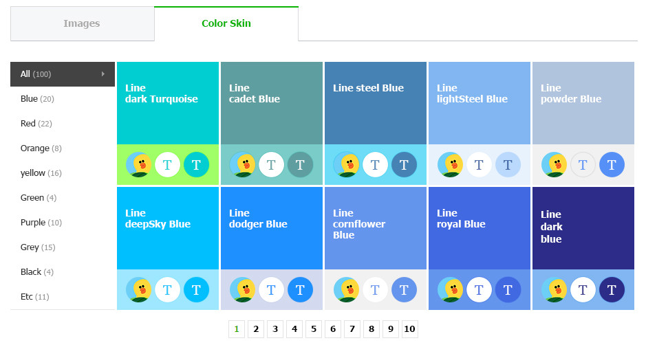 (1) 個人・企業を問わず、LINEアカウントを持つユーザーが「着せかえ」を制作し*1、LINEの審査を経た後に、「LINE」アプリ内の着せかえショップや「LINE STORE」を通じて、世界中のユーザーに、自作の「着せかえ」を販売できるサービスです。(2) 約50種類(予定)のカラースキンの中から、好みのパターンを選んで制作できます。
