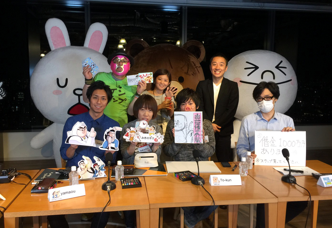 速水もこみち似のイケメンyamaouさん、和菓子店を営みながらスタンプ作りに励むみきのすけさん、若干20歳ながらアクの強いキャラを生み出すTo-kunさん、1,000万円以上の借金を抱えているオガペチさん。個性が強すぎるメンバーがそろいました。