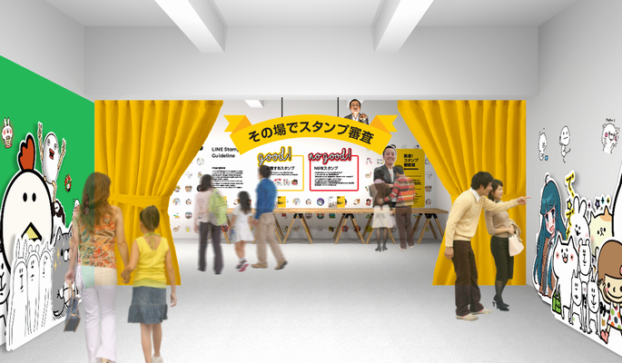 スタンプをリリースするまでの関門「スタンプ審査」を、その場で1枚から体験できる審査室を用意します。