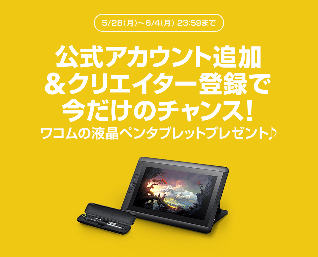・本キャンペーンに参加いただいた方の中から、当社にて1名の当選者を選定し、ワコム液晶ペンタブレットCintiq 13HDをプレゼントします。