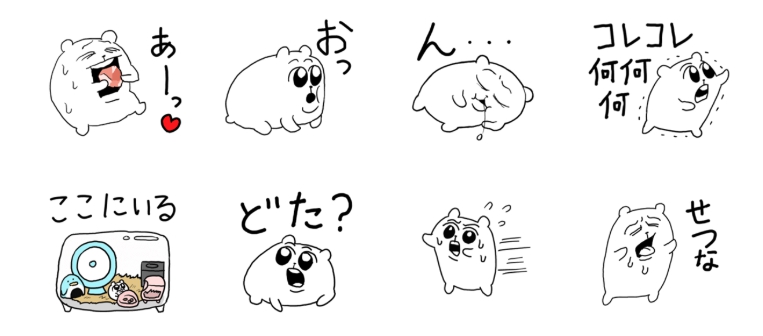 Twitterで大人気のクリエイターによる超絶シュールなハムスタースタンプです。