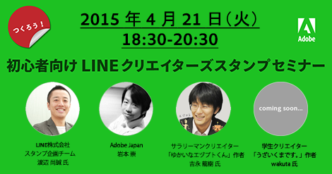サービス 2015年04月03日 初心者クリエイターを応援! 「手描き」でできるスタンプ作成講座が4月21日開催 初心者クリエイターの皆さんを支援するセミナーイベント「ヒットスタンプ制作者に学ぶ 『手描き』でできるスタンプ作成講座」が、4月21日(火)に開催!