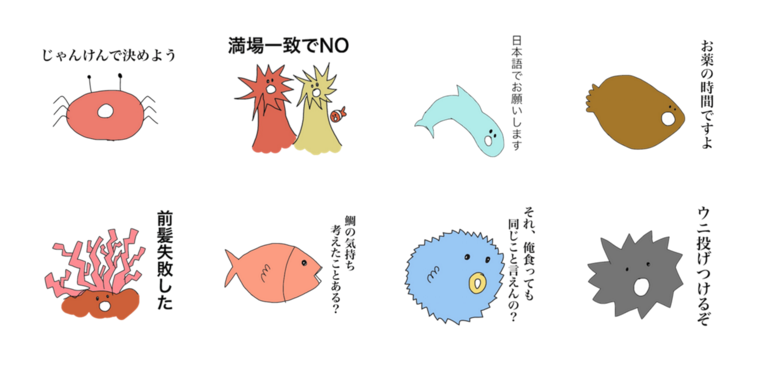 ランキング 2016年01月17日 「ウニ投げつけるぞ」海にいそうな生き物が言いたい放題! 週間使用率ランキング・ベスト5(1/4~1/10) 今回は、1月4日~1月10日に使用率が高かったクリエイターズスタンプのベスト5をご紹介します。また、ランクインしたスタンプの中で、よく使われている絵柄のトップ3も調査しました。 ●調査概要調査対象:1月10日時点でLINE Creators Marketで販売されているスタンプのうち