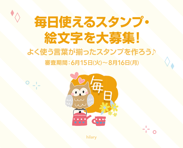 2021年06月15日 【特集に参加しよう♪】「毎日使えるスタンプ・絵文字」を大募集!! 2021年8月2日(月) 〜8月31日(火)の期間、LINEクリエイターズマーケットでは「毎日使えるスタンプ・絵文字特集」を実施します。本特集はLINEクリエイターズマーケットのマイページから特集への参加が可能です☆■今回のテーマは“毎日使える”毎日よく使う言葉が揃った「毎日